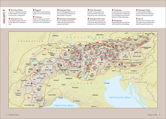 In den Alpen werden Naturfreunde wie Gipfelstürmer und Erholungsuchende fündig. Das höchste Gebirge Europas bietet facettenreiche Ökosysteme und Erlebniswelten: Im Murnauer Moos lässt sich eine Fülle an Tier- und Pflanzenarten erkunden, das Große Walsertal mit seinen tiefen Schluchten und tosenden Wasserfällen bietet Outdoorfans lange Wanderwege und Lehrpfade, in den Julischen Alpen trifft man auf eine uralte Kulturlandschaft. Das Buch stellt alle Reiseziele vor und bietet einen Atlas sowie brillante Bilder der alpinen Landschaften.