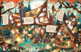 Halloween, die gruseligste Zeit des Jahres ist da! Du hast keine Angst vor schaurigen Gestalten? Dann komm mit, hier gibt es einige zu entdecken! Besuche die Hexen, Zauberer und Sumpfwesen im Hexenwald, die um das Feuer tanzen. Schau bei Familie Troll in ihrer Höhle vorbei und finde heraus, wo die Vampire den Rote-Bete-Saft für ihren Jahrmarkt herbekommen. Du wirst erstaunt sein, denn viele von ihnen sind gar nicht so gruselig, wie sie aussehen. Ganz im Gegenteil, sie machen viele Sachen, die du auch machst! Natürlich verkleiden sich auch die Kinder und feiern in der Kita eine Halloweenparty. Später ziehen sie dann noch für Süßes oder Saures um die Häuser. Bist du bereit für ein bisschen Gruselspaß?