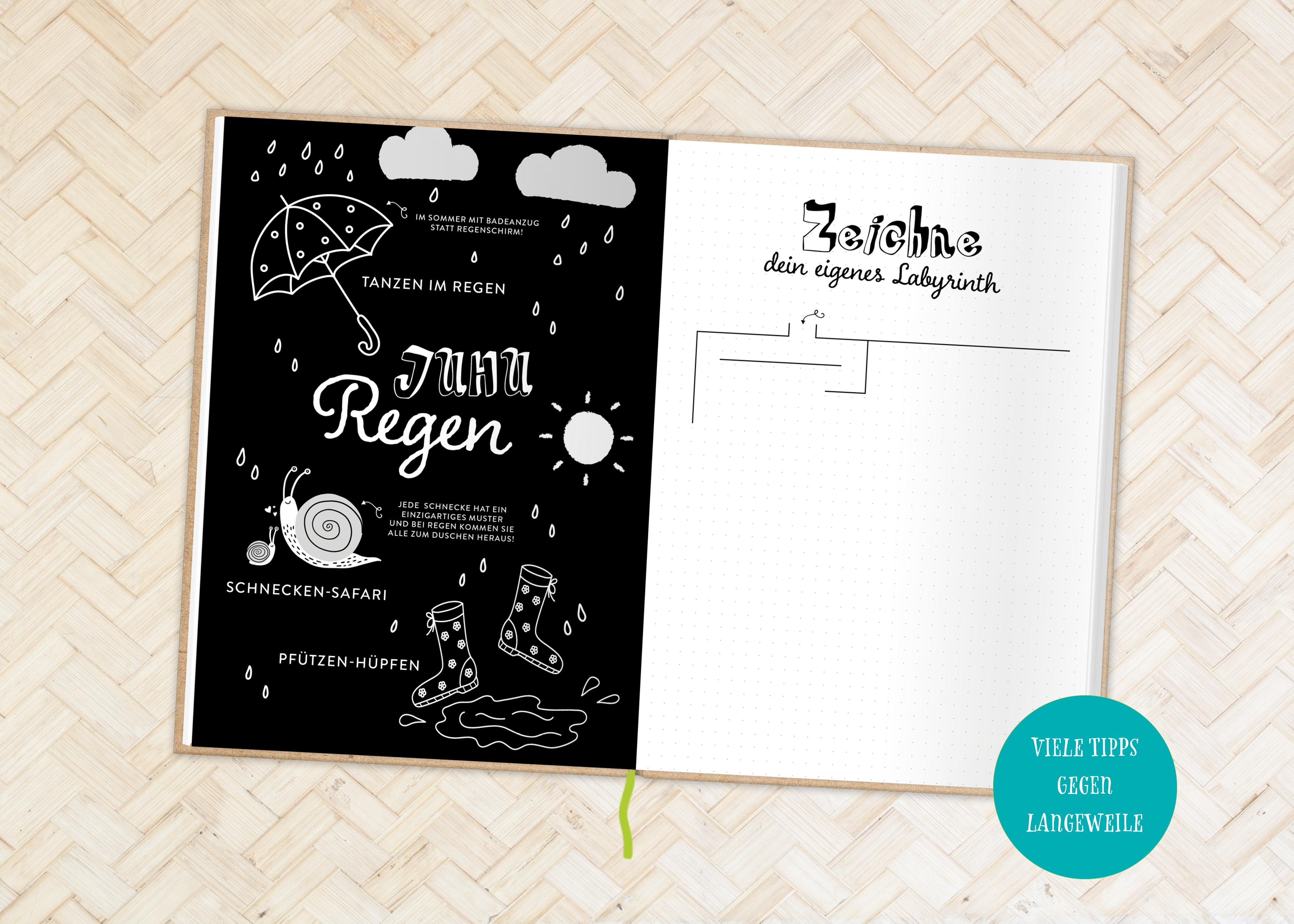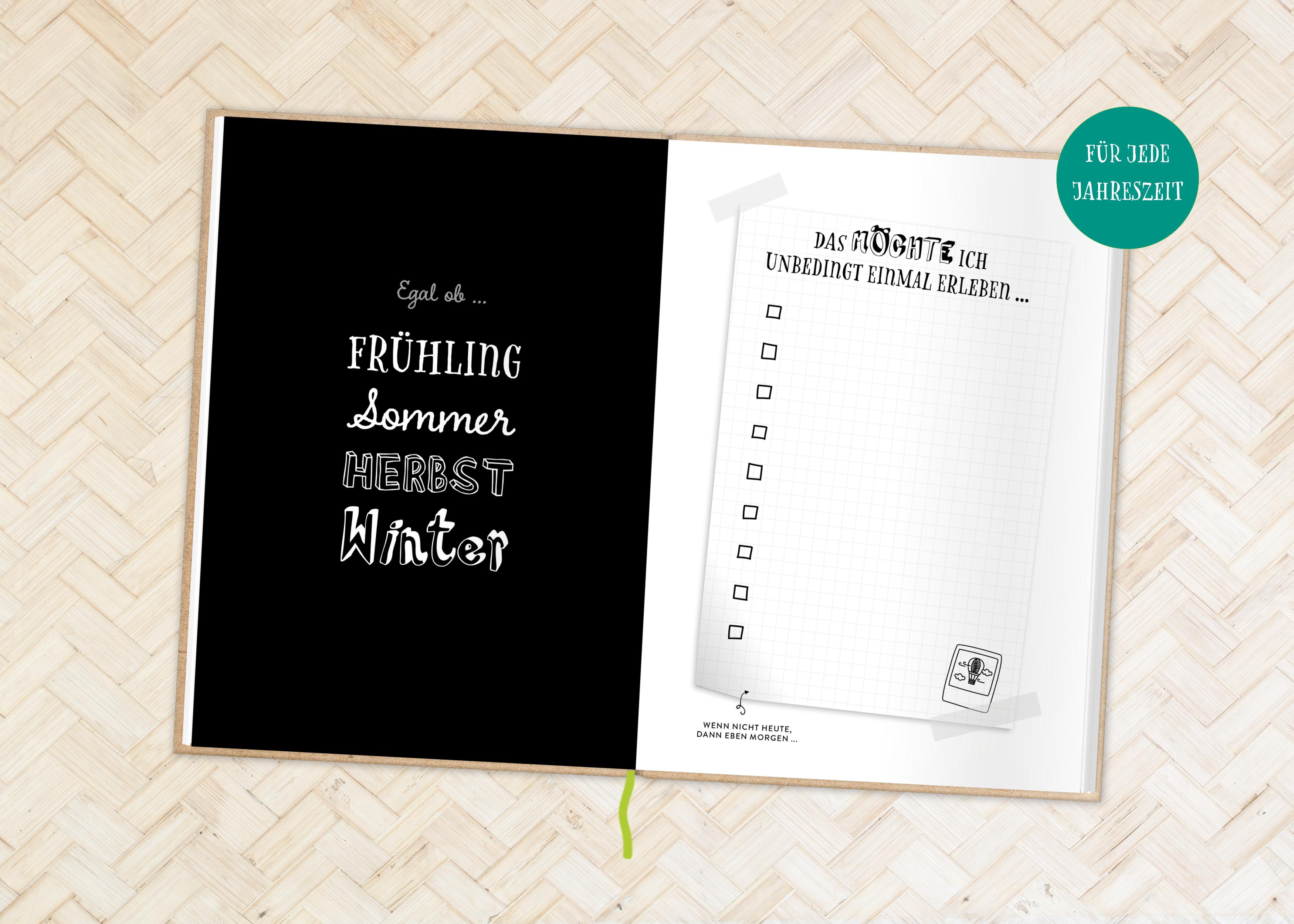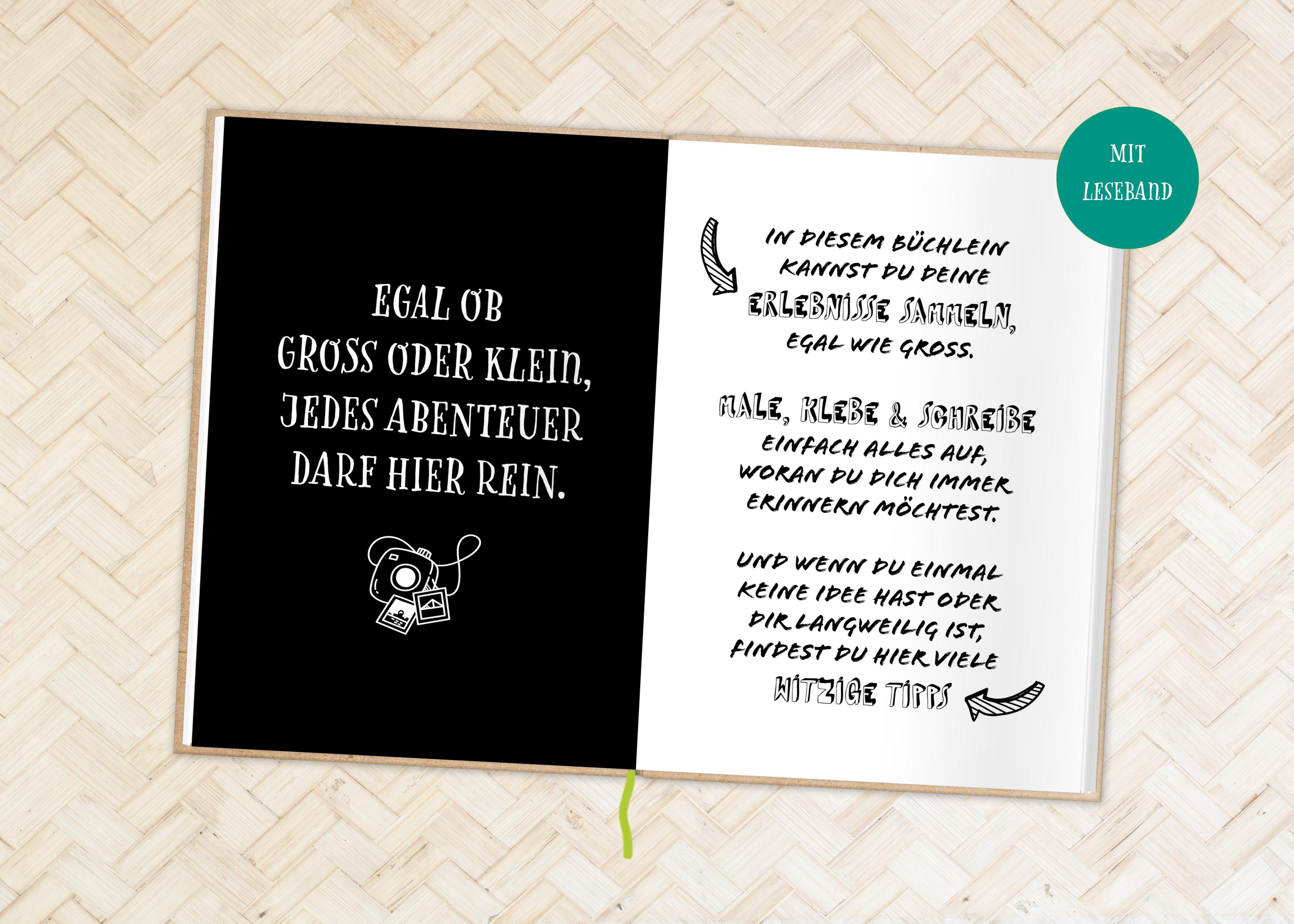 Neben witzigen Tipps gegen Langeweile und spannenden Rätselseiten gibt es viel Platz, der ganz individuell gestaltet werden kann. Auf diesen Seiten können eure Kinder ihrer Kreativität freien Lauf lassen, Ausflüge beschreiben, Eintrittskarten und Erinnerungen sammeln oder einfach nur ein Bild von ihrem schönsten Moment malen.