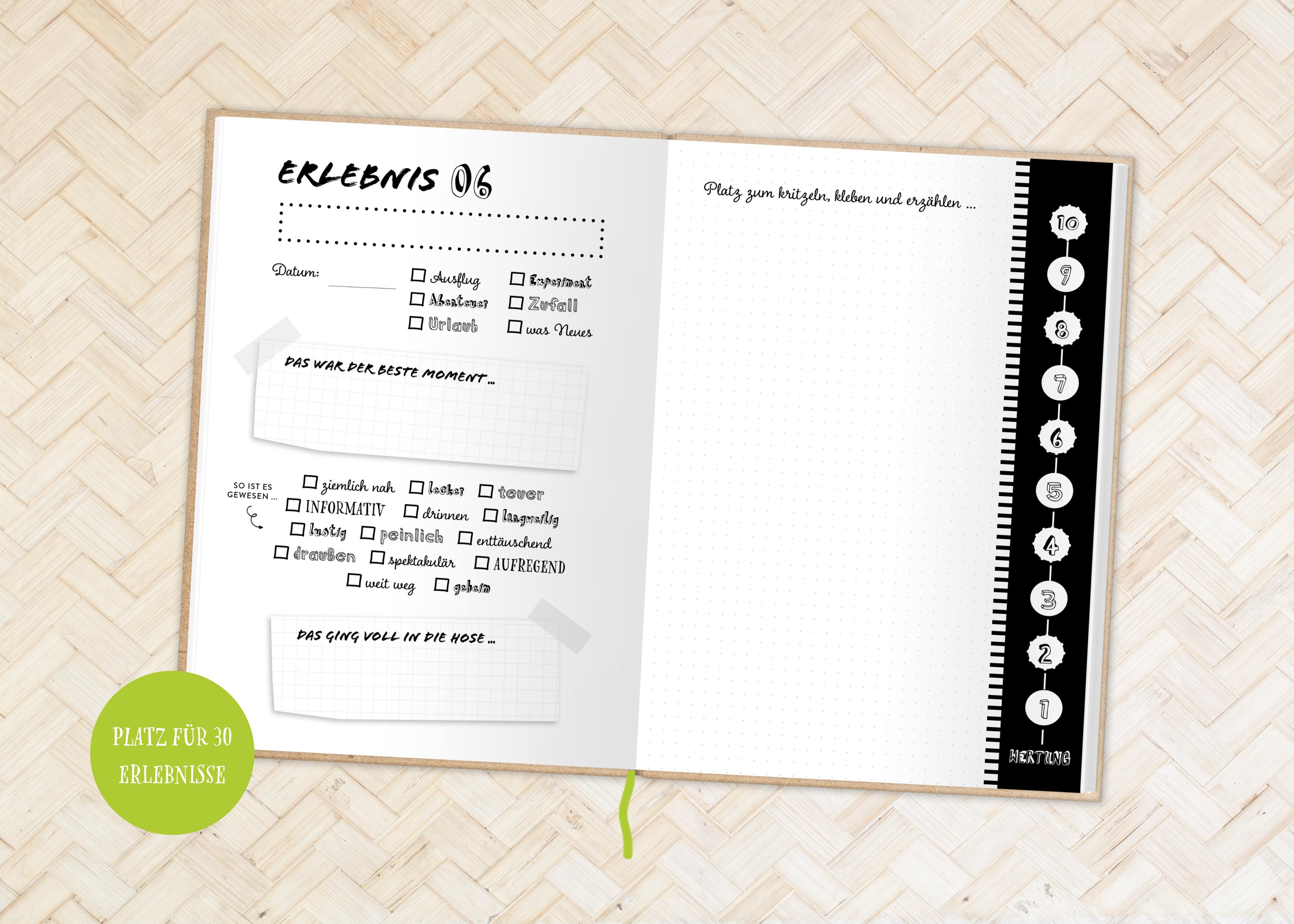 Mit dem hochwertigen Hardcover-Umschlag wird das Erlebnisbuch zum langlebigen Erinnerungsbuch und ist dennoch handlich und leicht, um ohne Probleme in jedes Handgepäck zu passen. Spielideen, Labyrinthe und 30 Abenteuer-Vorlagen laden zum Mitmachen ein.