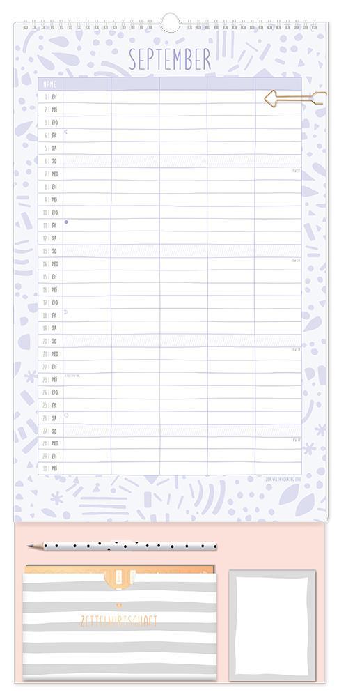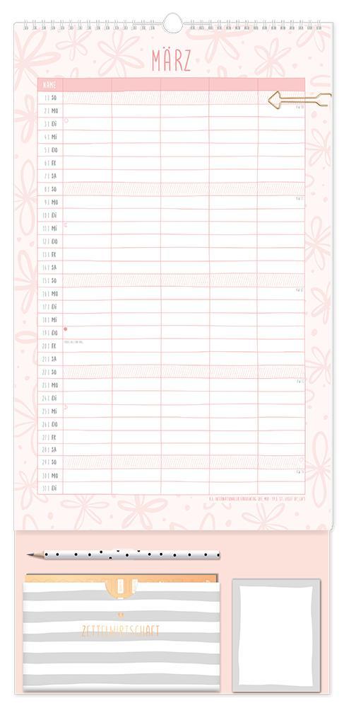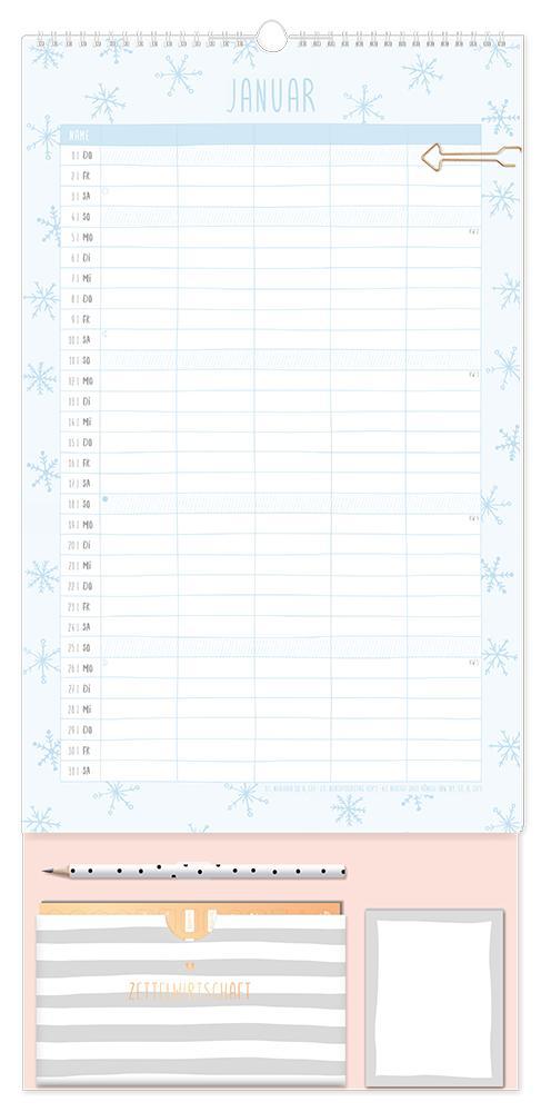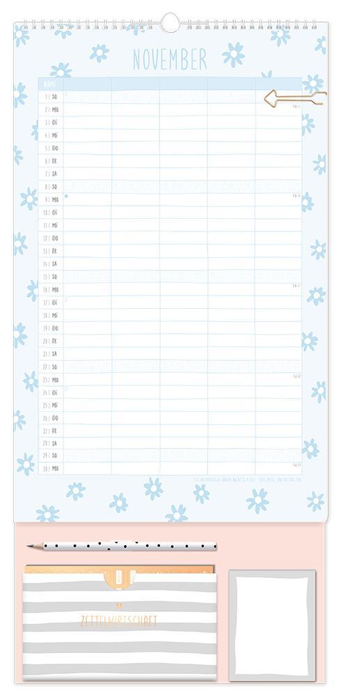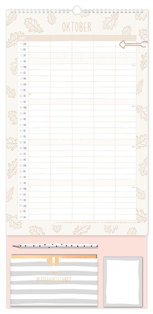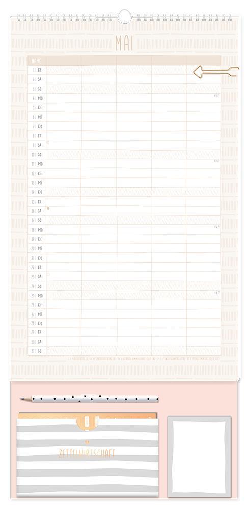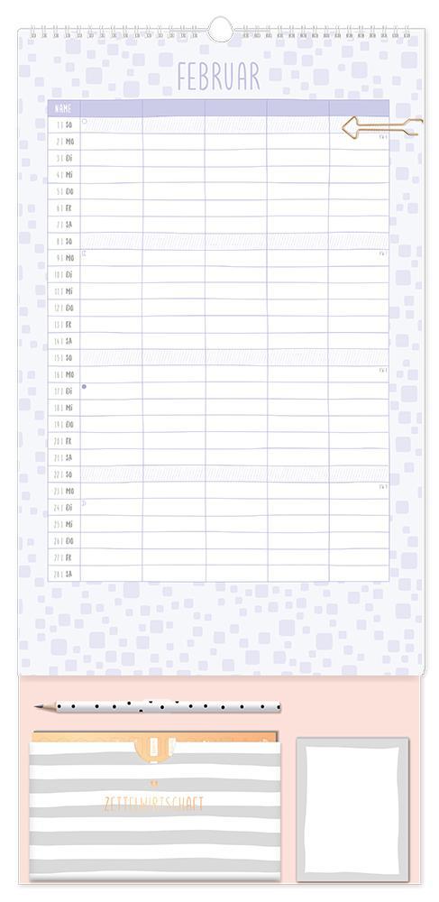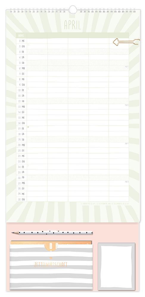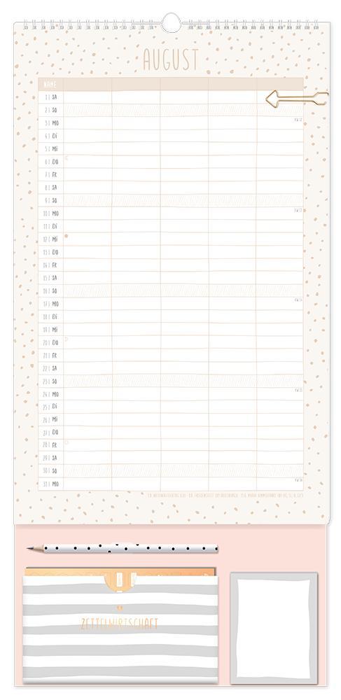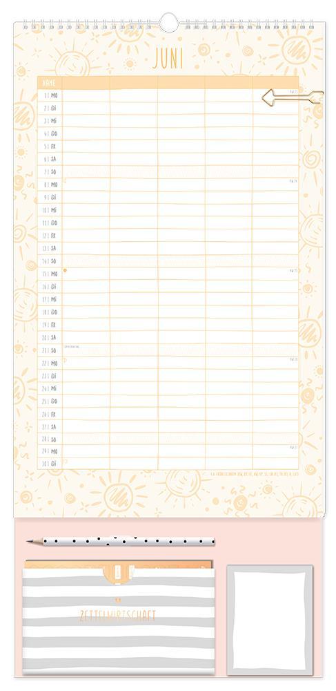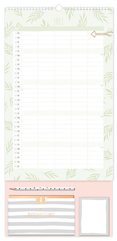 Dieser Premium Familienplaner ist der perfekte Jahresplaner für bis zu 5 Personen mit vielen praktischen Extras. Ein Monat auf einer Seite und 5 extra große Spalten sorgen für den perfekten Überblick und leiten die ganze Familie durch den Alltag. Edles Design in Kombination mit tollen Extras wie 4 Stickerbögen, eine praktische Aufbewahrungstasche, Bleistift und einem Notizblock sorgen Monat für Monat für gute Laune. Feiertage und Schulferien sind im Familienplaner natürlich eingetragen.¿ Großformatiger Premium Familienkalender zum Aufhängen (29 x 61 cm)¿ 5 Spalten für alle Familienmitglieder¿ Praktische Spirale für ein einfaches Umblättern¿ inkl. Pfeil-Klammer, Bleistift, Aufbewahrungstasche, Notizblock und 4 Stickerbögen¿ Wochenvorschau 2027 und Mondphasen¿ Feiertage (für D, A und CH) und Schulferien (für D und A)