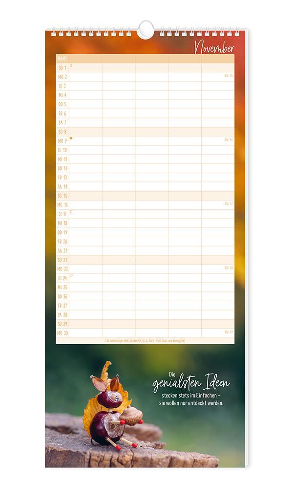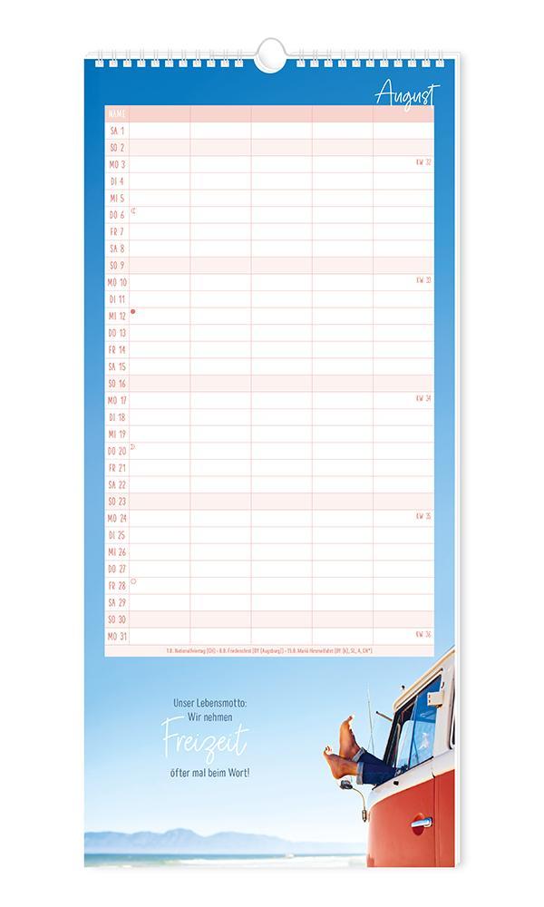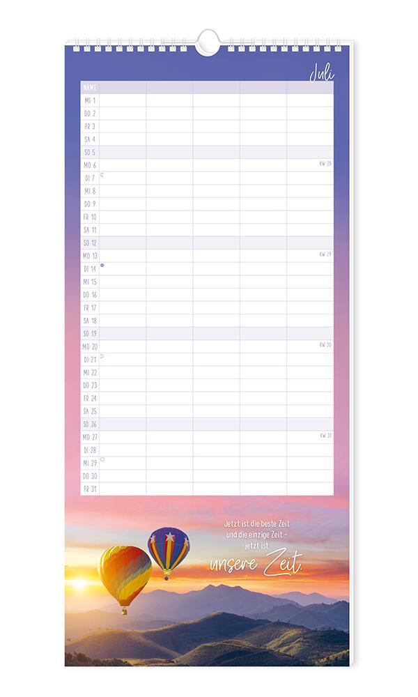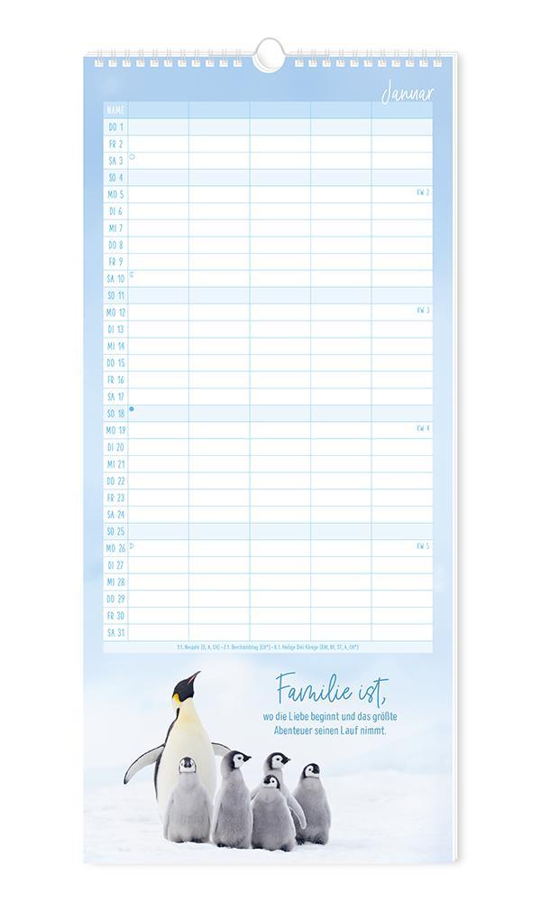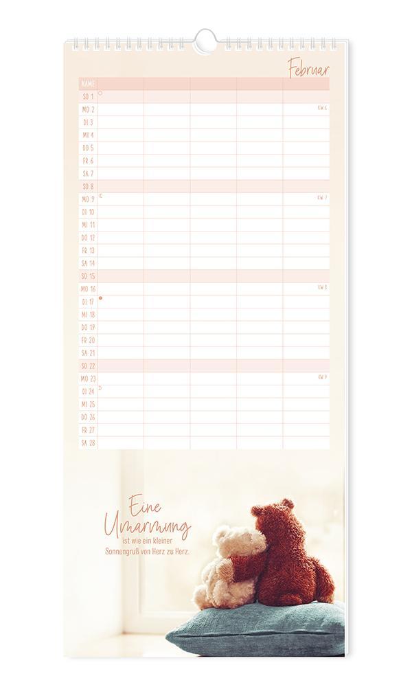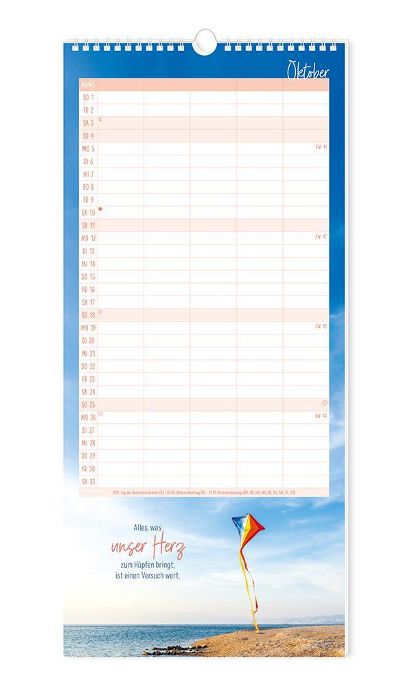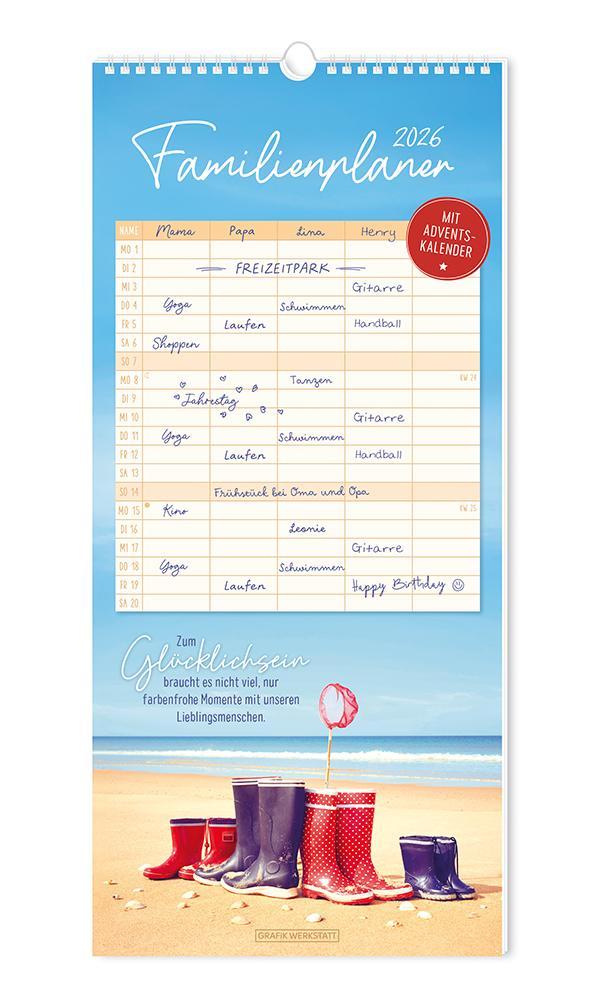 Großer Familienplaner 2026 für mehr Struktur im Alltag Dieser Familienplaner ist der perfekte Jahresplaner für bis zu 5 Personen. Ein Monat auf einer Seite und 5 extra große Spalten sorgen für den perfekten Überblick und leiten die ganze Familie durch den Alltag. Schlichtes Design in Kombination mit motivierenden Sprüchen sorgen Monat für Monat für gute Laune. Feiertage und Schulferien sind im Familienplaner natürlich eingetragen. Ein zusätzliches Highlight ist der extra Adventskalender für eine schöne Vorweihnachtszeit.¿ Großformatiger Familienkalender zum Aufhängen (24 x 48 cm)¿ 5 Spalten für alle Familienmitglieder¿ Praktische Spirale für ein einfaches Umblättern¿ inkl. Adventskalender und Wochenvorschau 2027¿ Feiertage (für D, A und CH) und Schulferien (für D und A) sind eingetragen