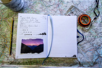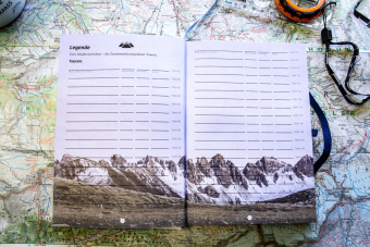 - 70 Tourenseiten: auf je einer Doppelseite kannst du die wichtigsten Daten, Erinnerungen und Notizen festhalten.