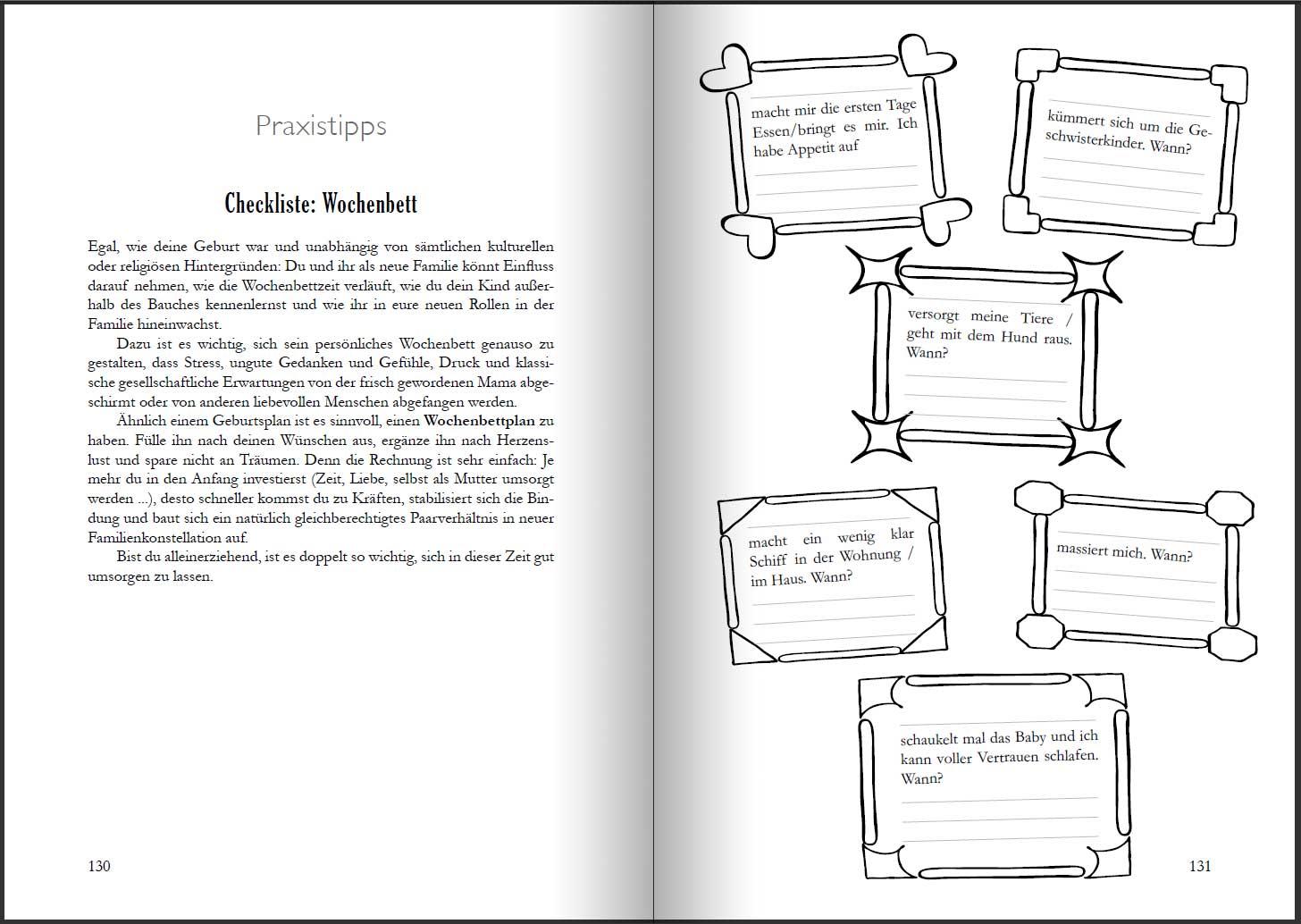 Willkommen in deinem neuen, aufregenden Leben als Mama! Dieses Überlebenshandbuch begleitet dich behutsam durch die zauberhaften ersten 40 Tage nach der Geburt. Alleingeburt-Autorin und Ärztin Sarah Schmid und Doula und Bildungswissenschaftlerin Navina Salomon gehen mit dir durch die Wochenbettzeit und geben Antworten auf die wichtigsten Fragen. Darunter:* Stillen, aber wie am besten? * Schnuller, ja oder nein?* Wird das Baby auch wirklich satt? Grundregeln* So läuft das mit dem Wochenfluss* Nabelschnur und Nabel: Bewährte Tipps* Warum schreit mein Baby und was kann ich tun?* Pipi und Kacka, so geht Windelfrei* Wochenbettwehwehchen und ihre Ursachen* Das Kind hat Fieber: Wann muss ich zum Arzt?* Soor und schmerzhafte Brustwarzen: Akut-HilfeGleichzeitig hast du genug Raum, ein Wochenbett-Tagebuch zu führen und deine persönlichen Gedanken, Gefühle und Erfahrungen für später festzuhalten. Im zweiten Teil dieses Buches hilft dir bewährtes, intuitives Wissen dabei, in deiner Rolle als Mutter anzukommen und deinen veränderten Körper neu kennenzulernen. Praxistipps mit Übungen zu Selbstfürsorge, Rückbildung und Wohlfühlen sowie Meditationen und Checklisten lassen dieses Buch zu deinem unverzichtbaren Anker im täglichen Leben mit dem Baby werden.Mit im Buch: Väteraufgaben / Herausforderungen meistern / Bebilderte Tuchbindetechnik als Korsage / Anleitung zur Dampfhocke / Narbenpflege und Narbenentstörung / Rezepte für Superfood nach der Geburt