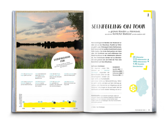 Bei der Tourenauswahl helfen Highlight-Listen für Kinder, E-Biker, Schlemmer und Ruhesuchende. Dank Eventkalender planst du deine Route immer zur besten Zeit und mit Radcheck und Packliste bist du bestens gerüstet fürs Heimat- oder Urlaubsabenteuer. Jede Tour wird ergänzt um Einkehrtipps, Anreiseinfos, Höhenprof