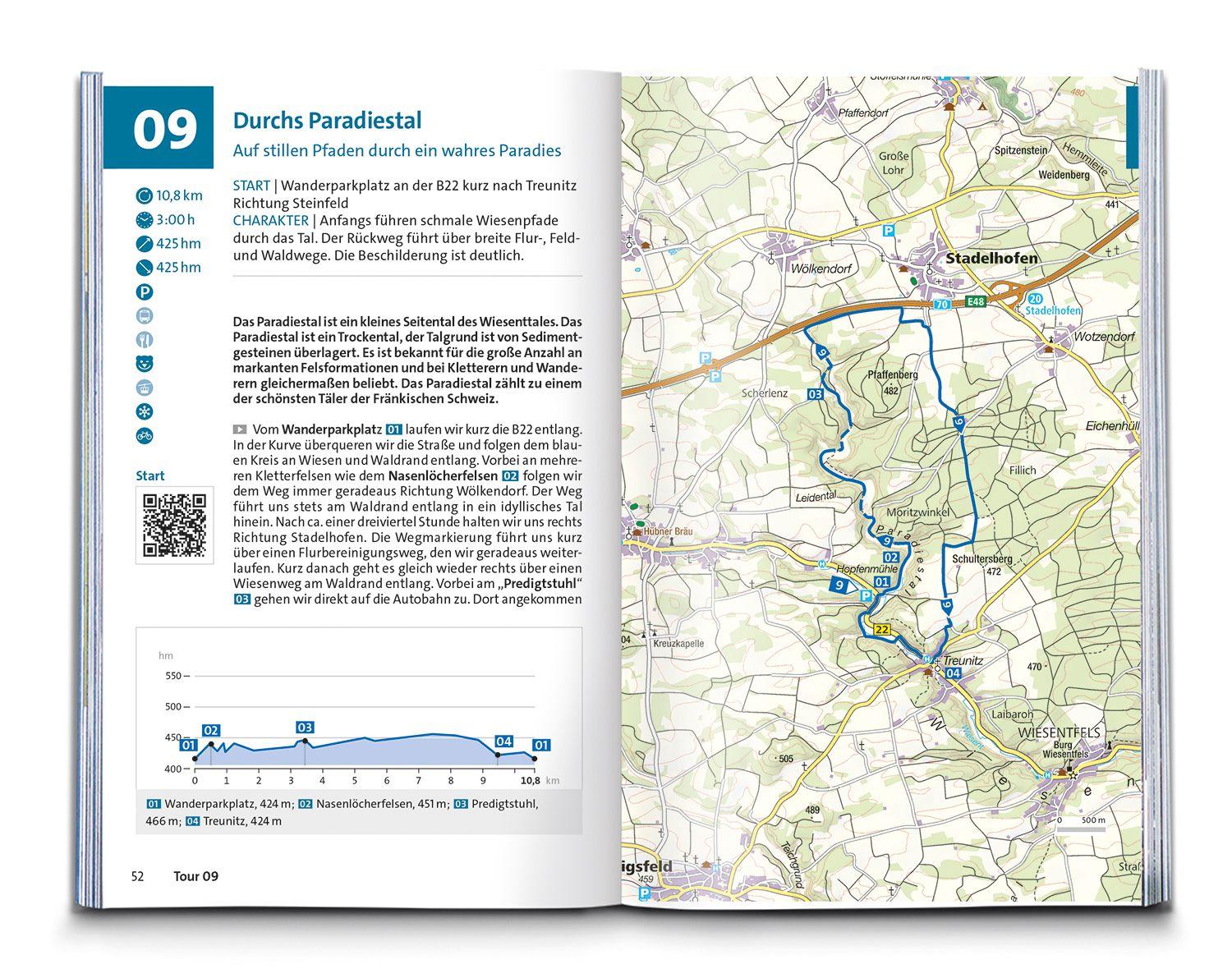 Kompass Wanderführer Fränkische Schweiz mit Oberem Maintal und Hersbrucker Schweiz Die Fränkische Schweiz verzaubert mit bizarren Felsformationen, grünen Tälern und malerischen Flüssen. Das Obere Maintal und die Hersbrucker Schweiz bieten abwechslungsreiche Wanderungen durch eine einzigartige Mittelgebirgslandschaft. Natur und Kultur vereinen sich hier zu einem harmonischen Gesamtbild.2in1 Wanderführer Fränkische Schweiz mit Oberem Maintal und Hersbrucker Schweiz + Extra-Tourenkarte- Von Kompass-Experten erwanderte Touren- Jede Tour mit Höhenprofil und Kartenausschnitt- Ausflugs- und Übernachtungstipps- Extra-Tourenkarte unterstützt bei Tourenauswahl- Inklusive Download der GPS-Daten- Alle Touren auch in der KOMPASS-AppDer Kompass Wanderführer mit Extra-Tourenkarte liefert die relevanten Informationen, die Du zur geplanten Wanderung benötigst. Er begleitet Dich sicher durch die gewählte Wanderdestination und bietet weitere Tipps rund um jede Menge Wandertouren. Kartenausschnitte geben dir örtliche Orientierung, Fakten und Berichte im Wanderführer erzählen dir Geschichten rund um die Gegend. Für unterwegs gibt es die leichte und herausnehmbare Extra-Tourenkarte mit den eingezeichneten Tourenverläufen. Der Kompass Wanderführer zeigt die besten Highlights: sportliche Gipfel, familienfreundliche Routen, genussvolle Momente, kulturelle Schätze oder das persönliche Highlight der Kompass-Experten.Tipp: Für alle Touren gibt es GPS-Daten im GPX-Format als Download zum Wanderführer. So können die Wanderungen direkt auf dem Smartphone oder GPS-Gerät zum Navigieren verwendet werden. Noch einfacher ist es die Touren in der KOMPASS-App zu nutzen.Entdecke mit dem Kompass Wanderführer atemberaubende Pfade und erlebe unvergessliche Abenteuer zu Fuß - hol Dir jetzt deinen Wanderführer und lass dich von Kompass leiten!