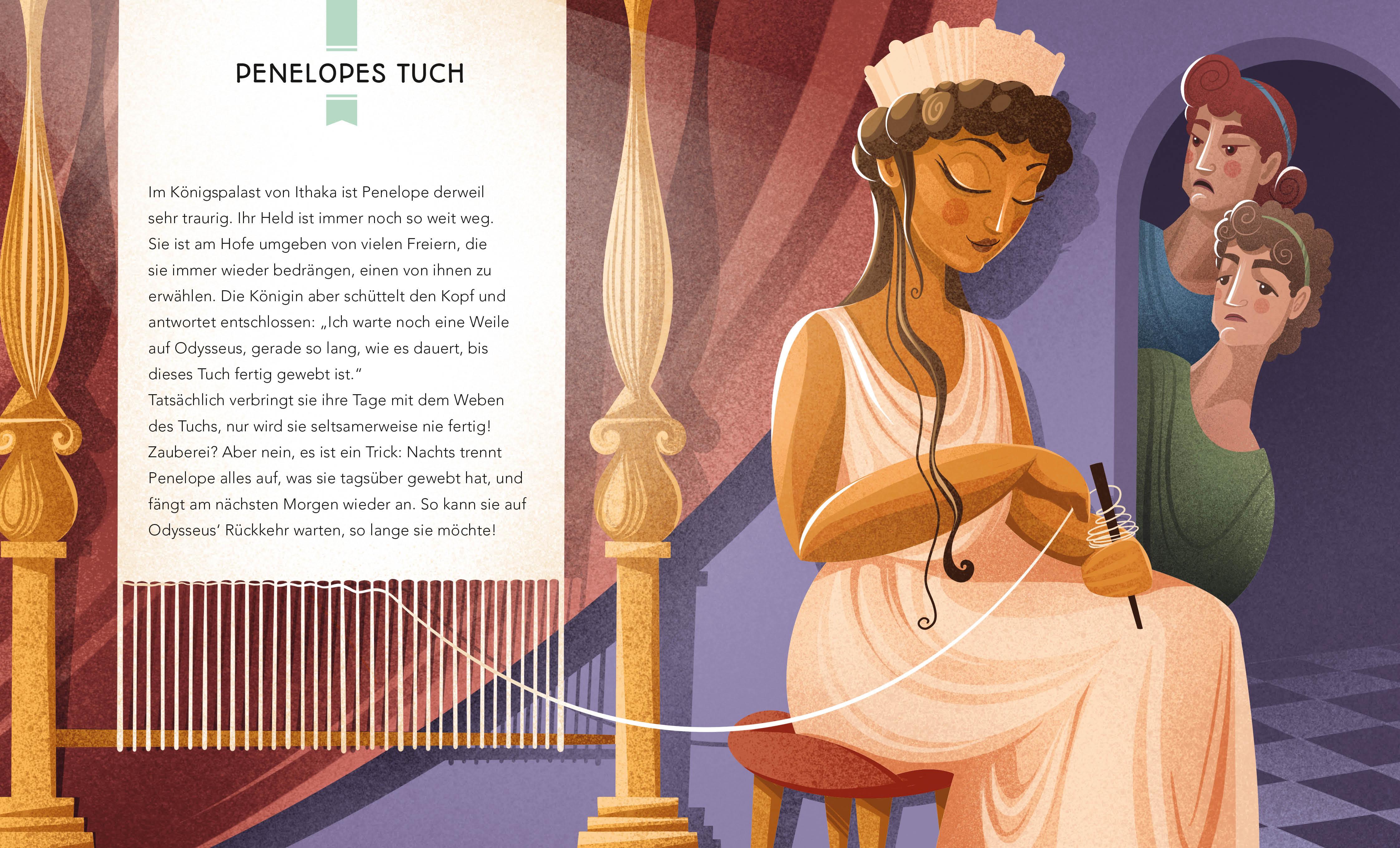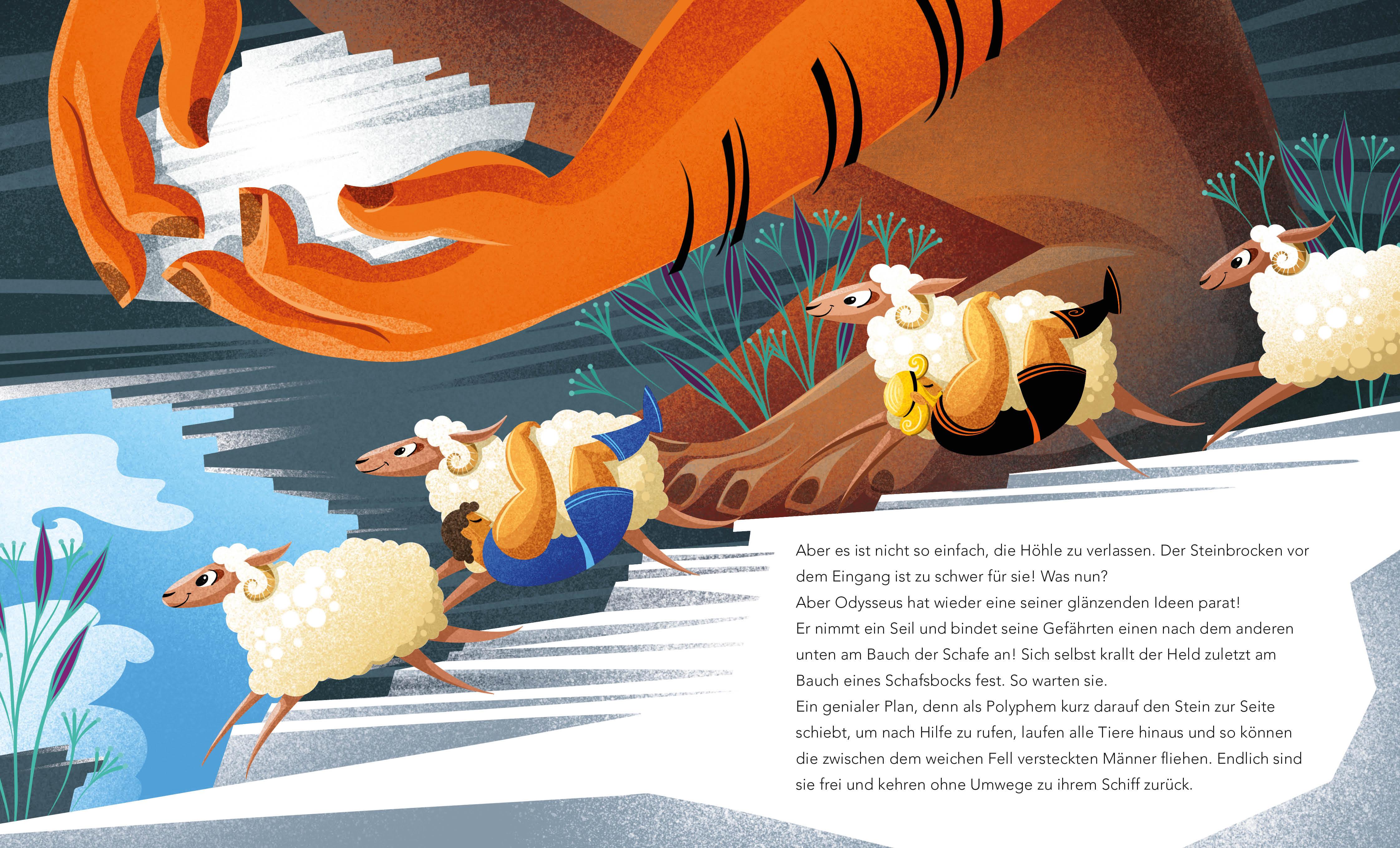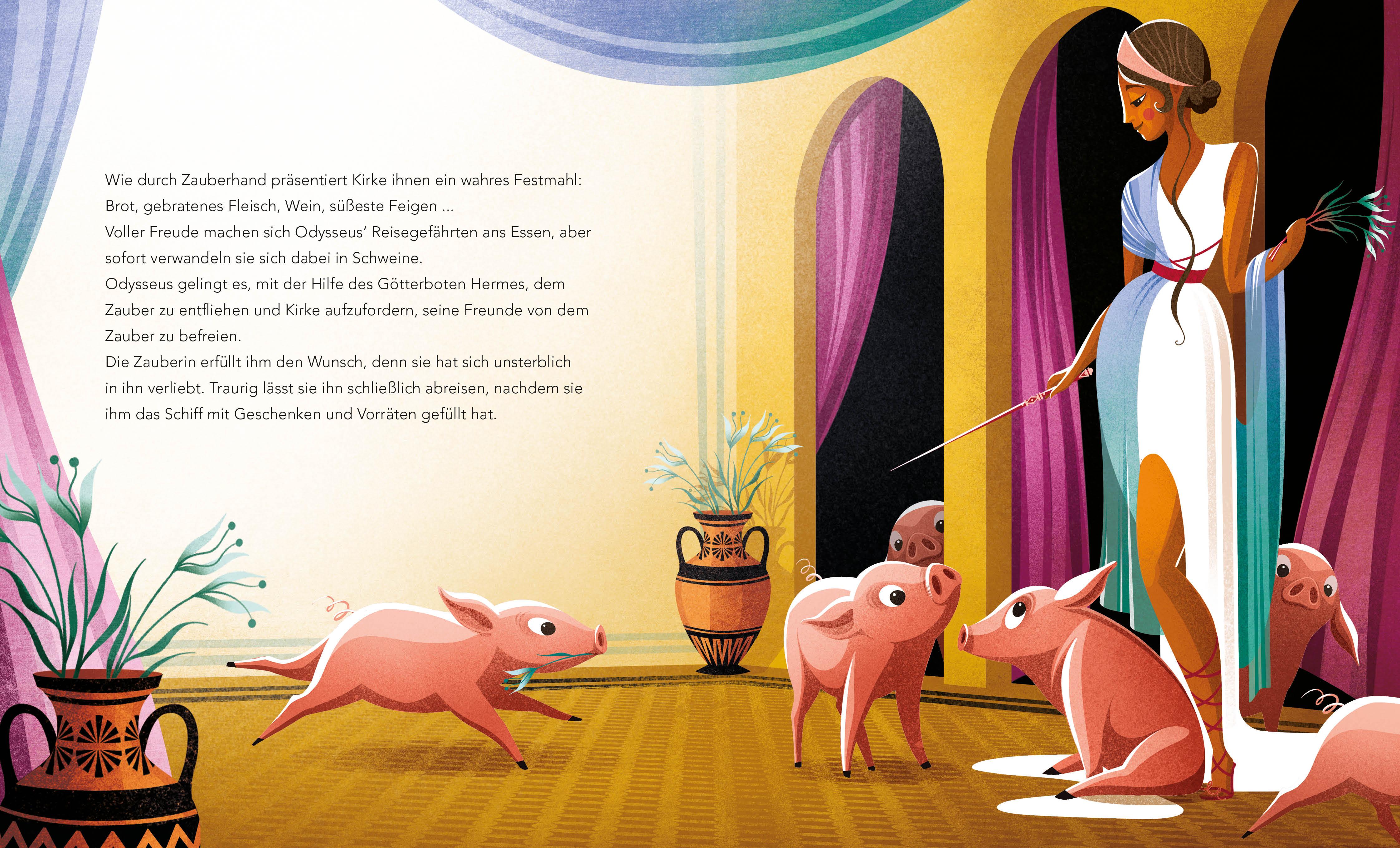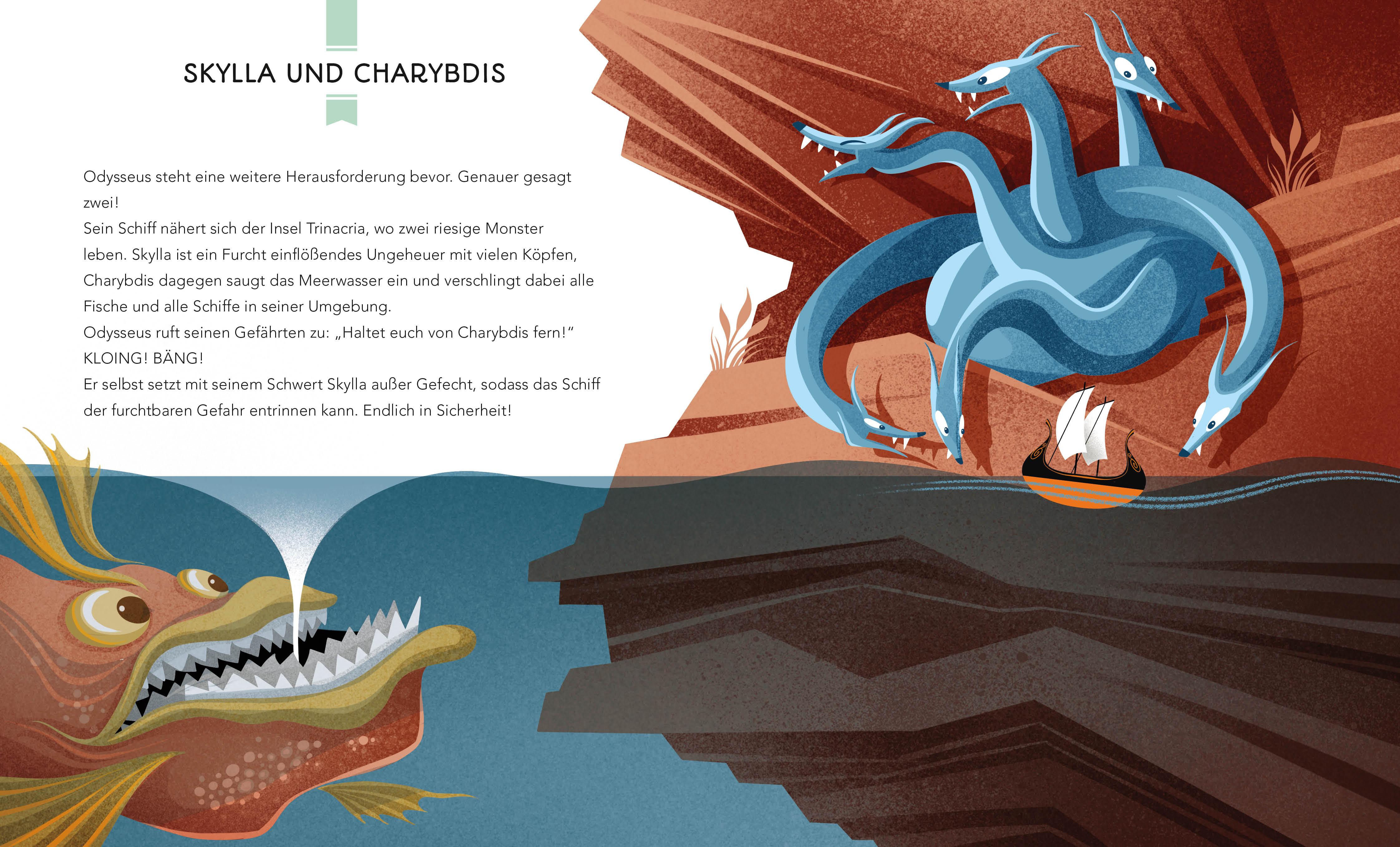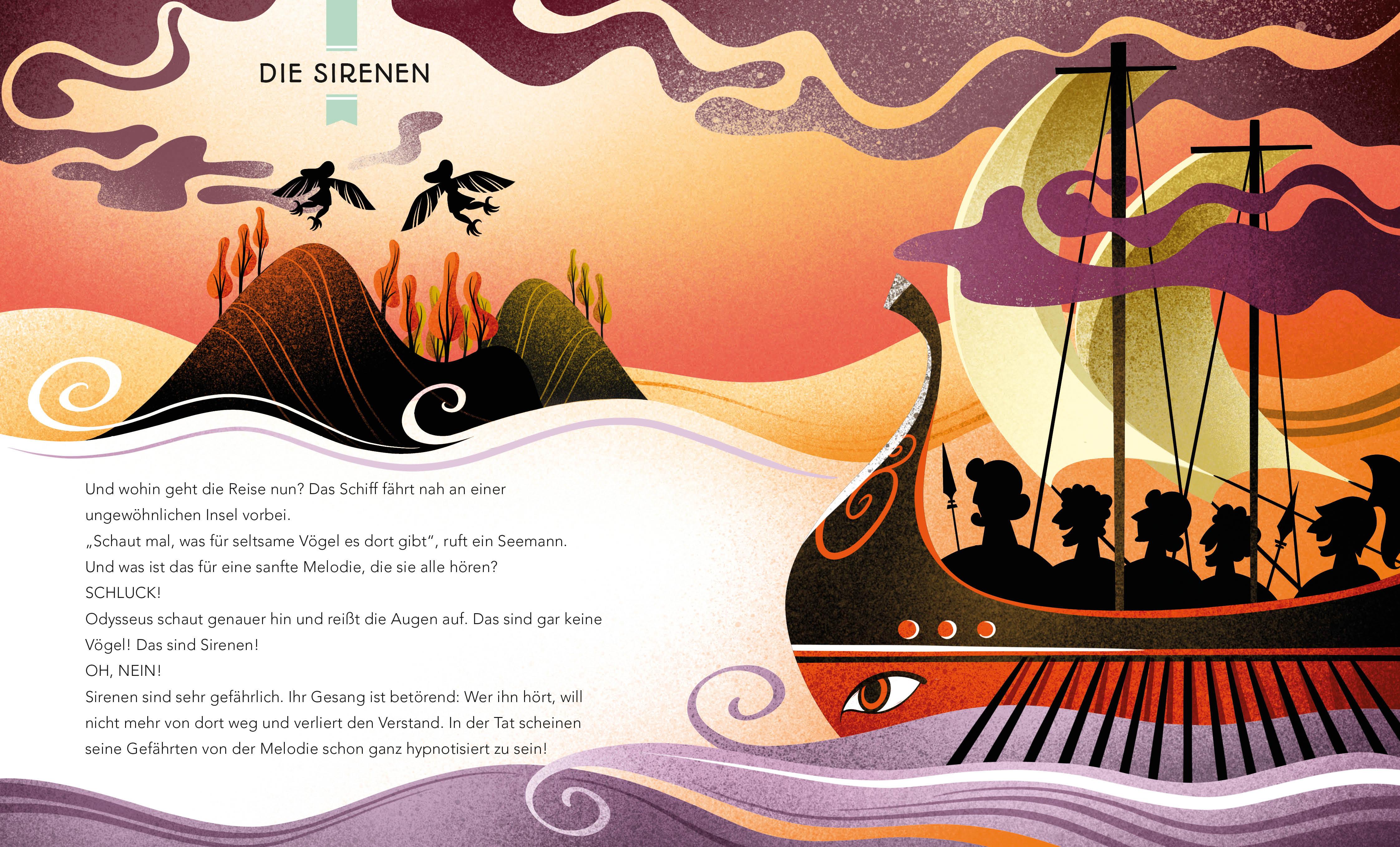 Homers Odyssee ist einer der wichtigen Texte der abendländischen Kultur. In dieser Buchreihe lernen die Kleinsten zum ersten Mal die faszinierende Welt der klassischen griechischen Mythologie kennen. Jede Ausgabe widmet sich in kindgerechter Sprache den bekanntesten und beliebtesten Helden, Göttinnen und Göttern. In diesem Buch wird die Abenteuergeschichte des Odysseus illustriert, der auf seinen Unternehmungen Heldentaten vollbringt und sich gefährlichen Situationen stellen muss. Er bringt die Griechen auf die Idee, in einem hölzernen Pferd heimlich in die Stadt Troja einzufallen. Er blendet den Zyklopen und entkommt den gefährlichen Sirenen.